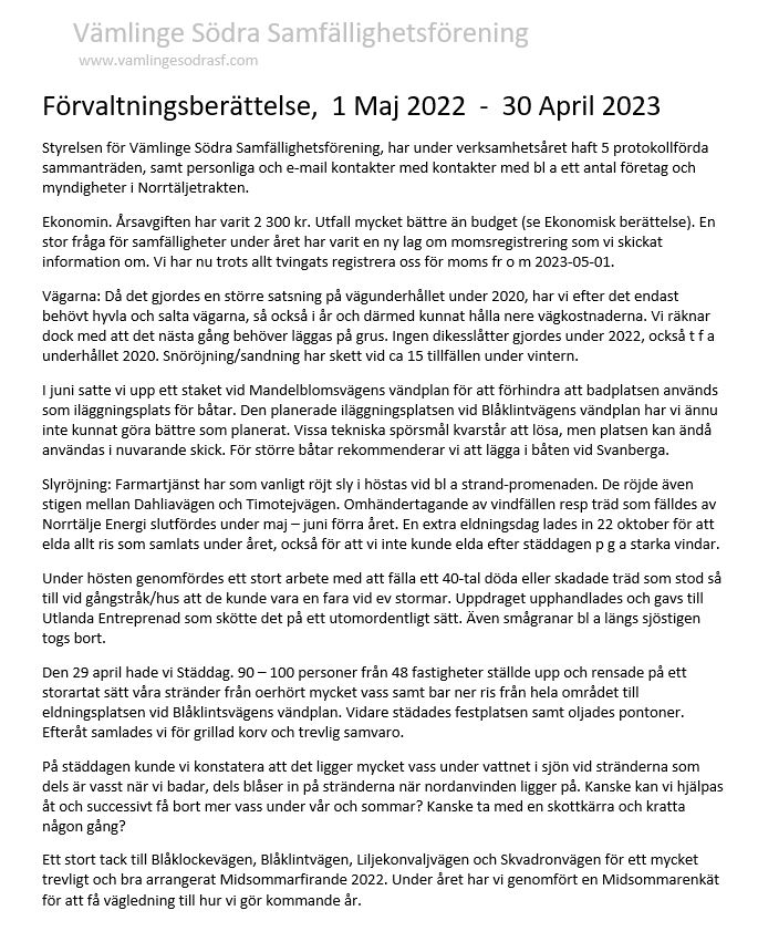 Vi har nu tvingats registrera Vämlinge Södra Samfällighetsförening för moms från och med 2023-05-01 dvs från vårt kommande verksamhetsår. Beroende på hur intäkter resp momsbelagda kostnader är under ett år kan det bli fråga om att betala in eller få tillbaka moms. I Vämlinge Södras fall bedömer vi att vi kommer behöva betala in moms då vi har kostnader som inte är momsbelagda och lågt bidrag från Trafikverket. Momsuttaget kommer påverka årsavgiften med, vad vi i dagsläget kan bedöma, en ökning på kanske 150 kr.